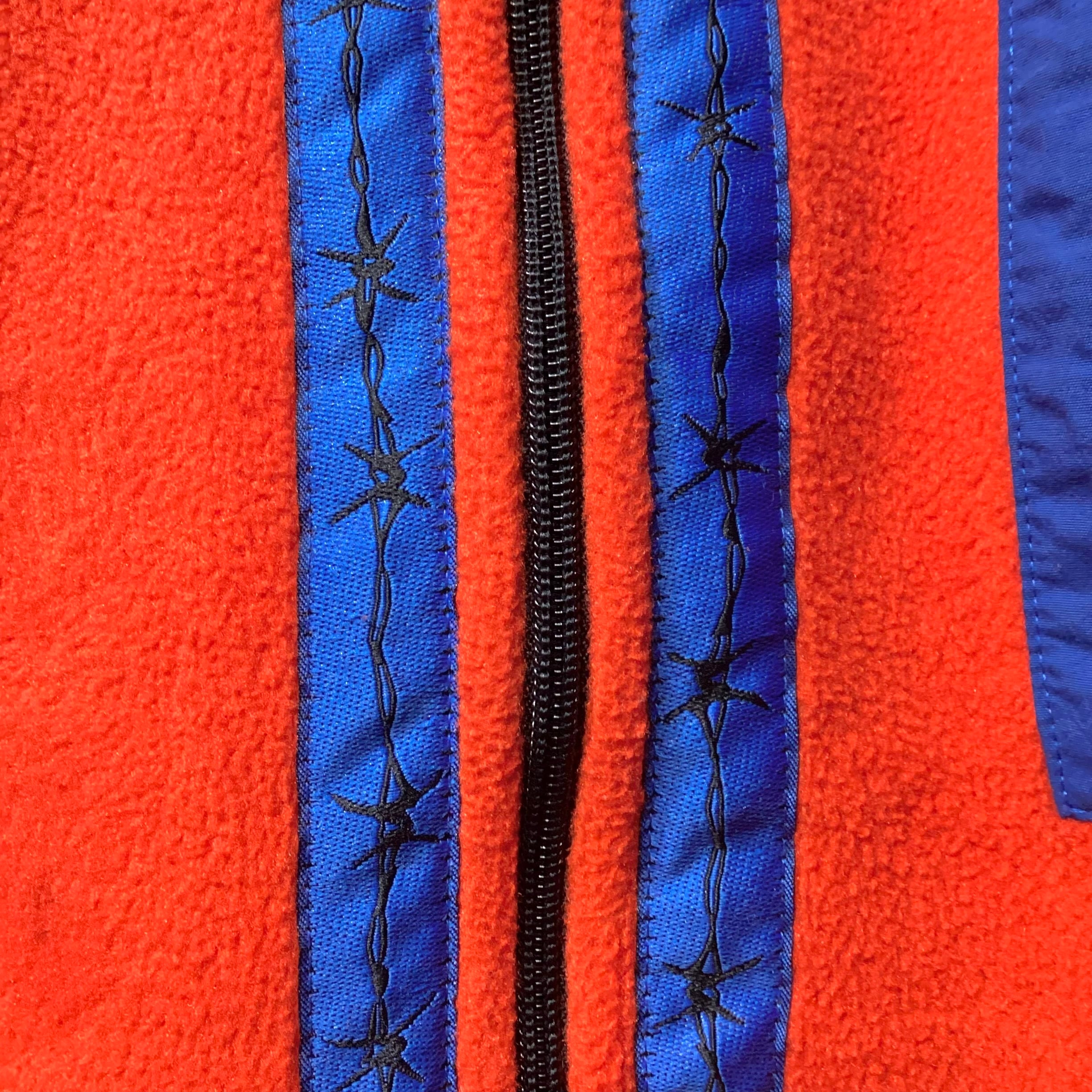 90年代のアメリカ製 LAST CHANCE SPORTSWEAR BARBED WIRE FULL ZIP FLEECE VEST です。
