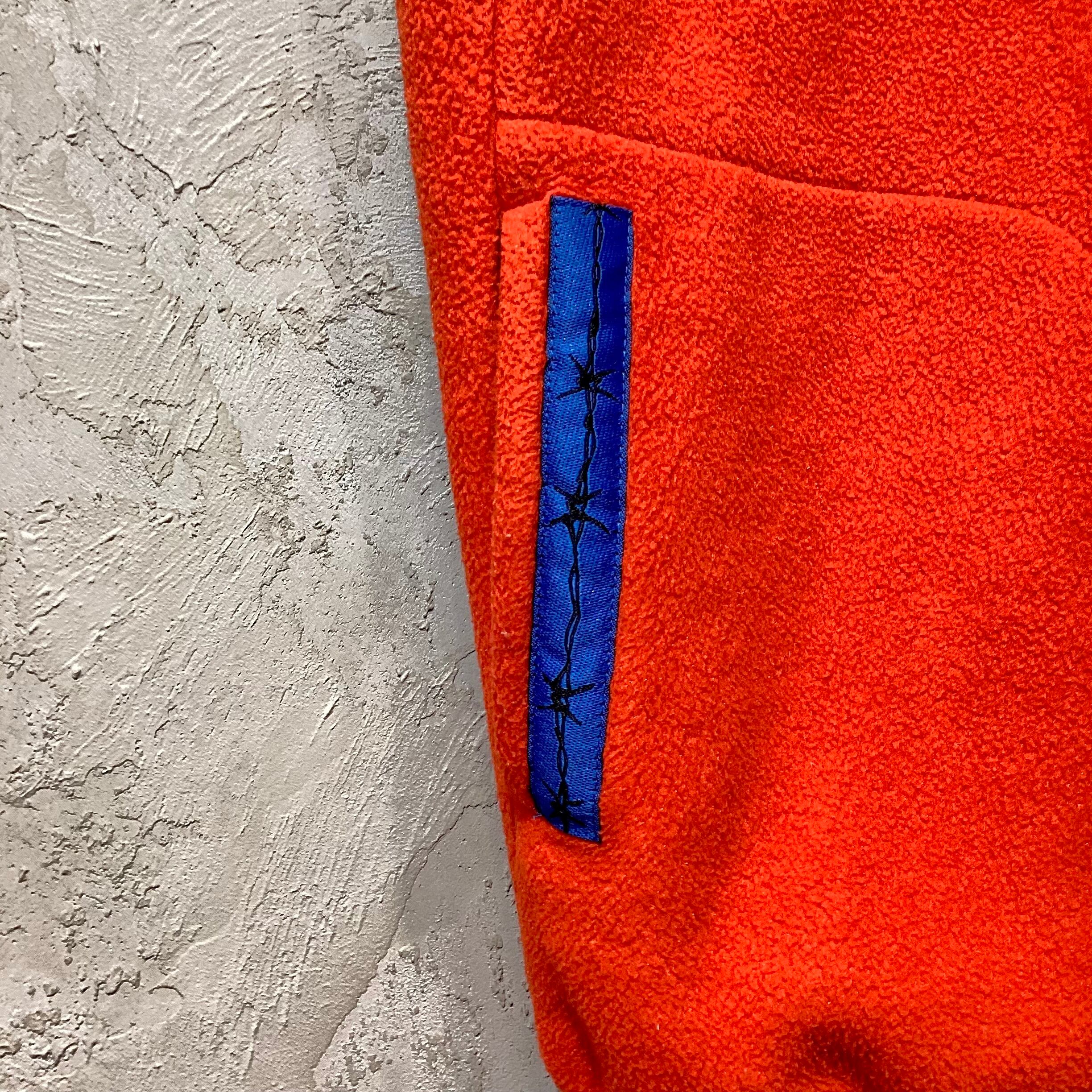 袖口、裾はパイピング仕上げになり、ポケット口、首周りからフロントジップに沿って ”有刺鉄線” のテープが付きます。
