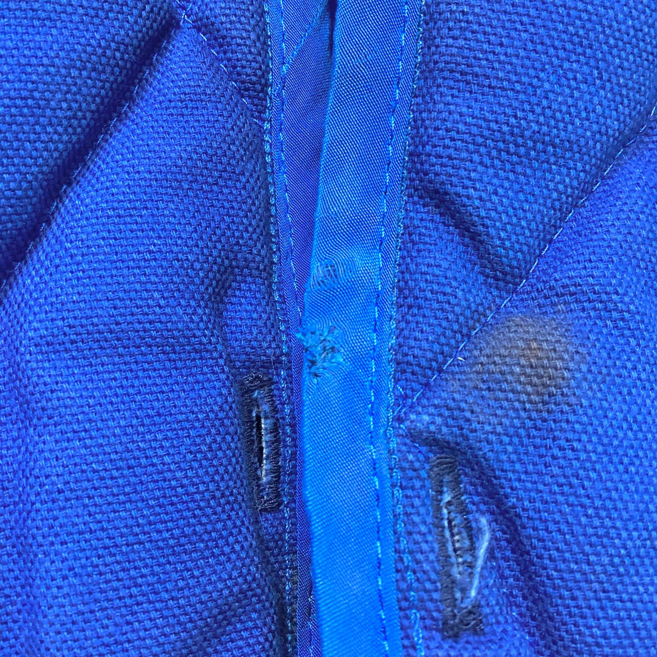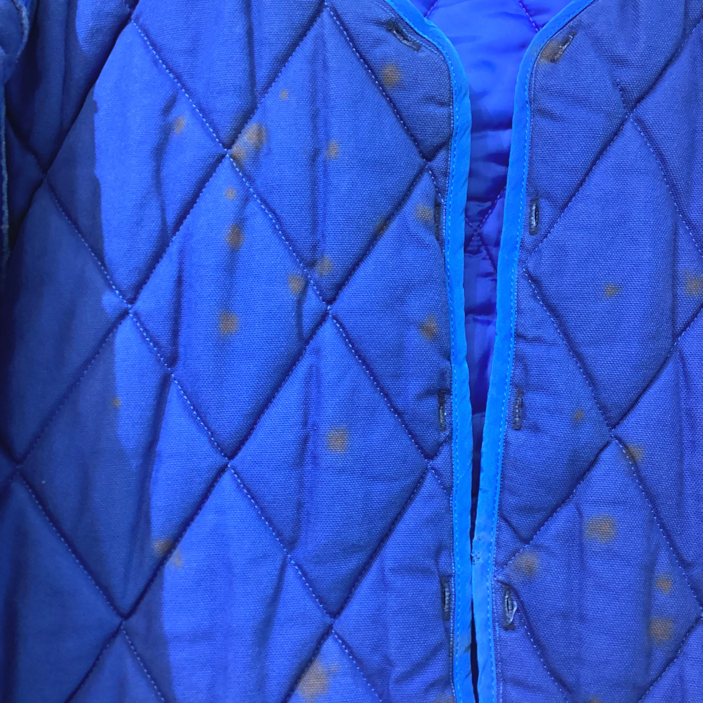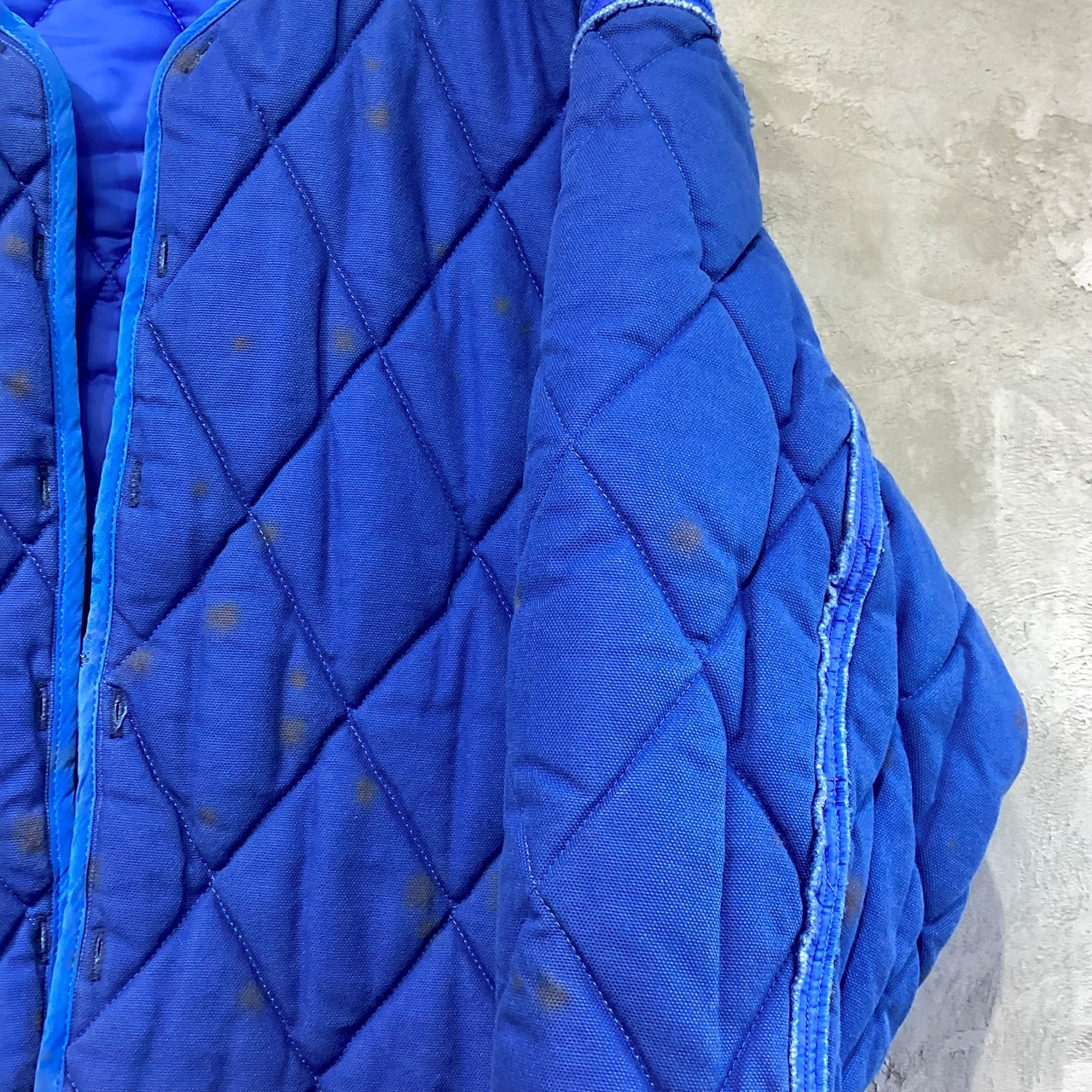 クリーニング済みでは御座いますがライナーの外側になるコットン生地側に錆の様な斑点が有り、パイピングにスレの様なダメージが御座いますが破損や破け等は無く着用には問題は無く大きなダメージの無い商品になります。(カラーには元々のナチュラルシープスキンのムラが御座います。画像にて御確認下さい。)