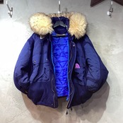 内側には紐での取り外し可能の肉厚なキルティングのライナーが付き、フード部分はボタンでの取り外しができ、極厚のリアルラムファーがフード口にふんだんにあしらわれています。