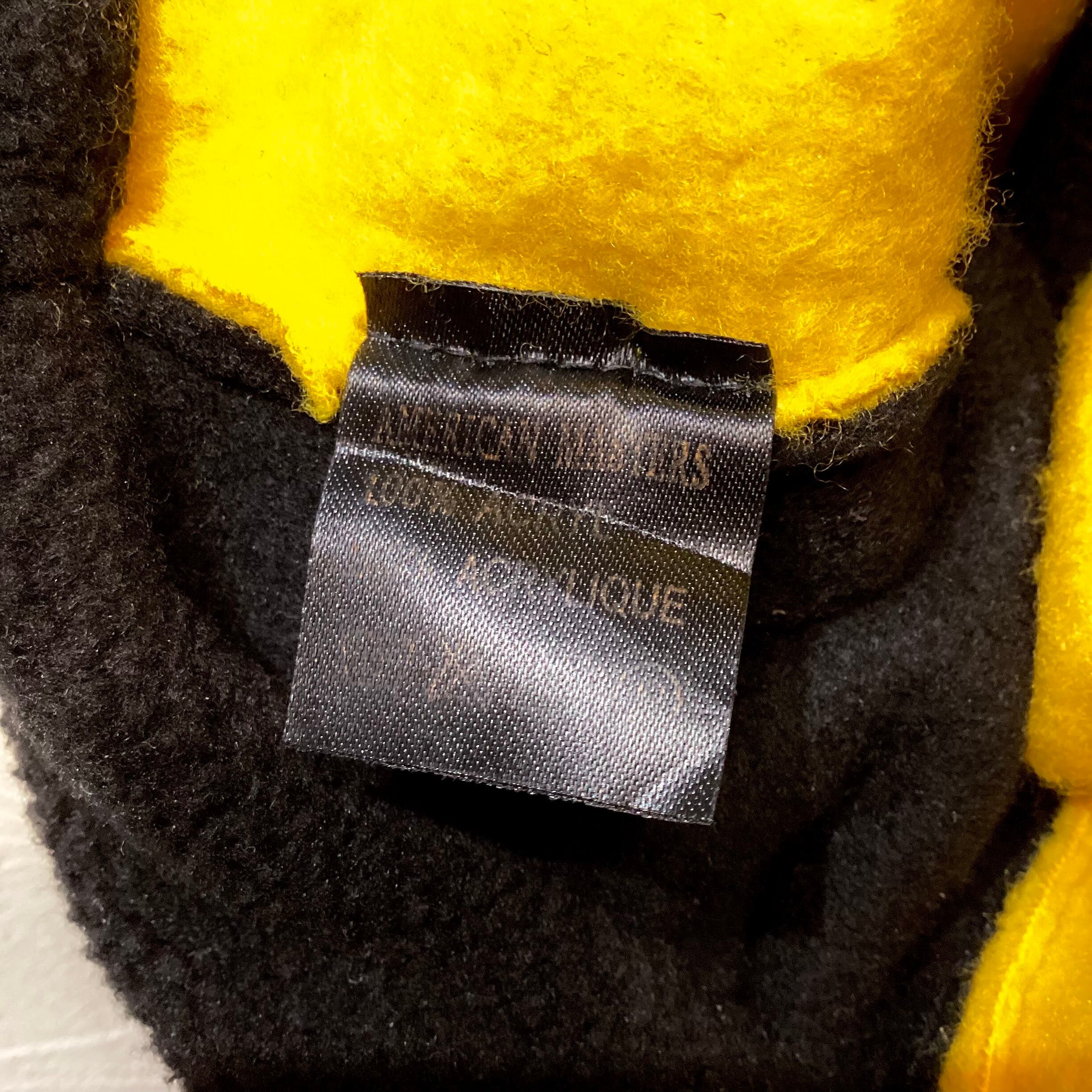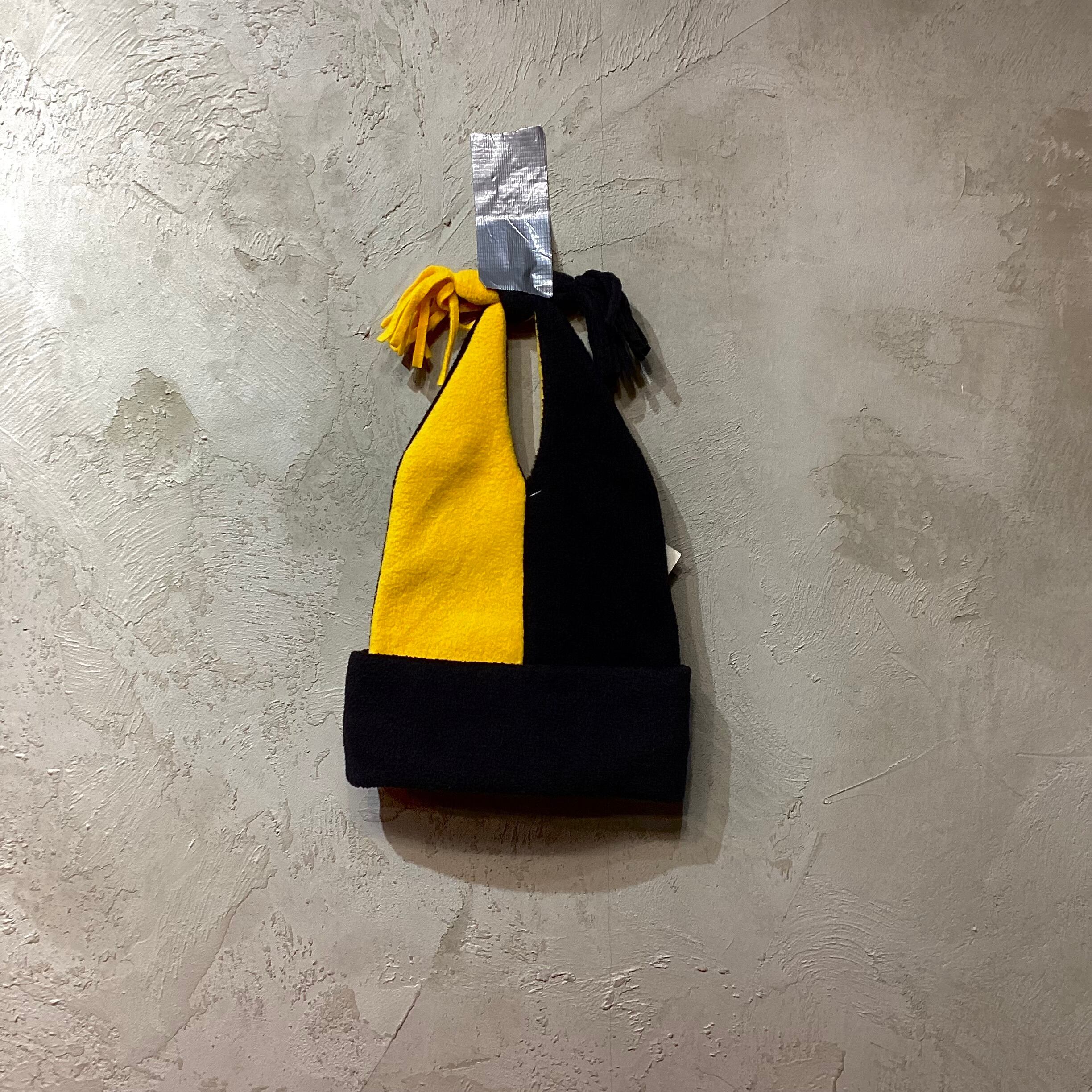黄色と黒の2トーンのフリースのピエロキャップです。