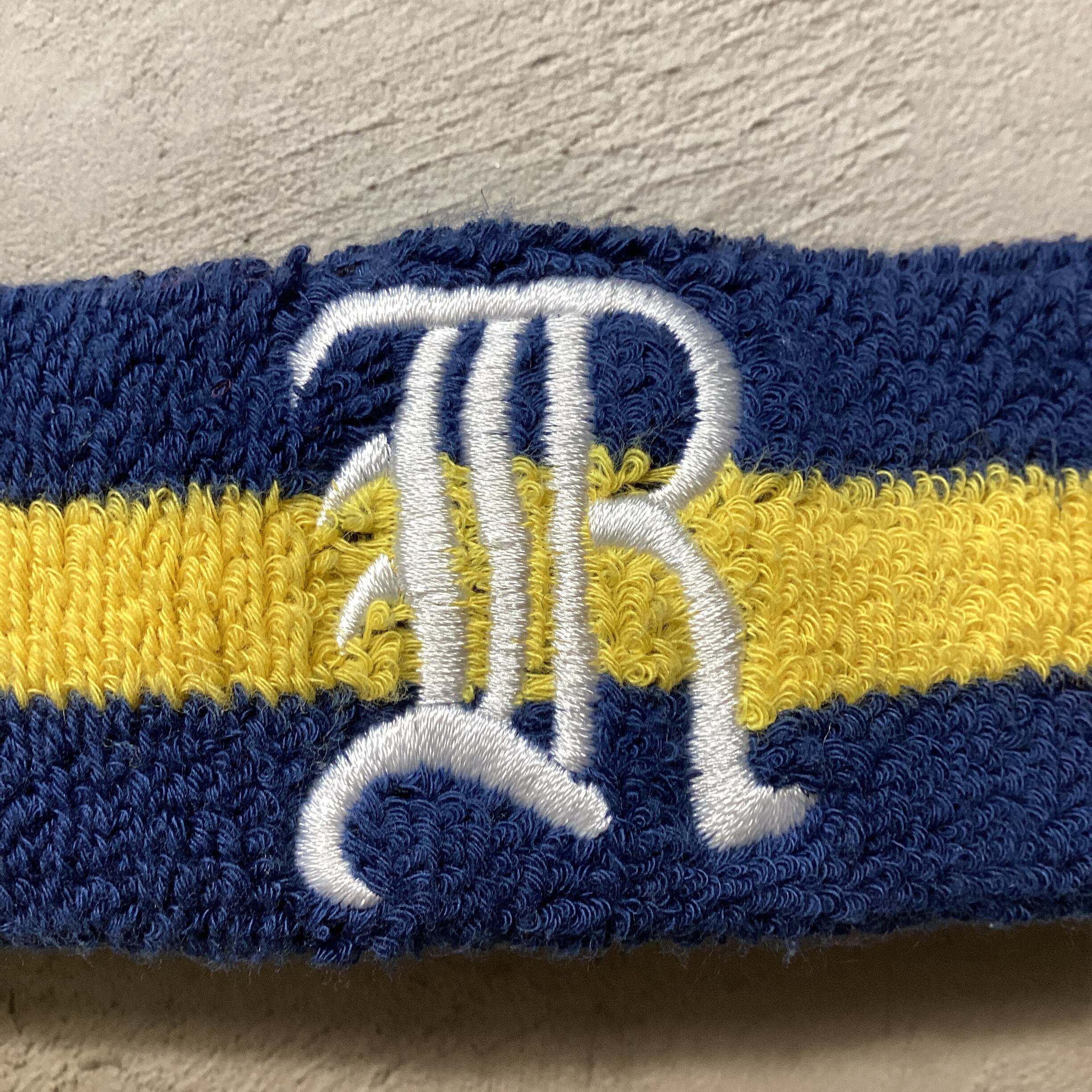 コチラは当時 ”RUGBY” で良く使われていた ”Old English” の文字の ”R” がフロントに刺繍で入り、”RALPH LAUREN” の十八番のネイビーとイエローのコンビのパイル生地のヘッドバンドになります。