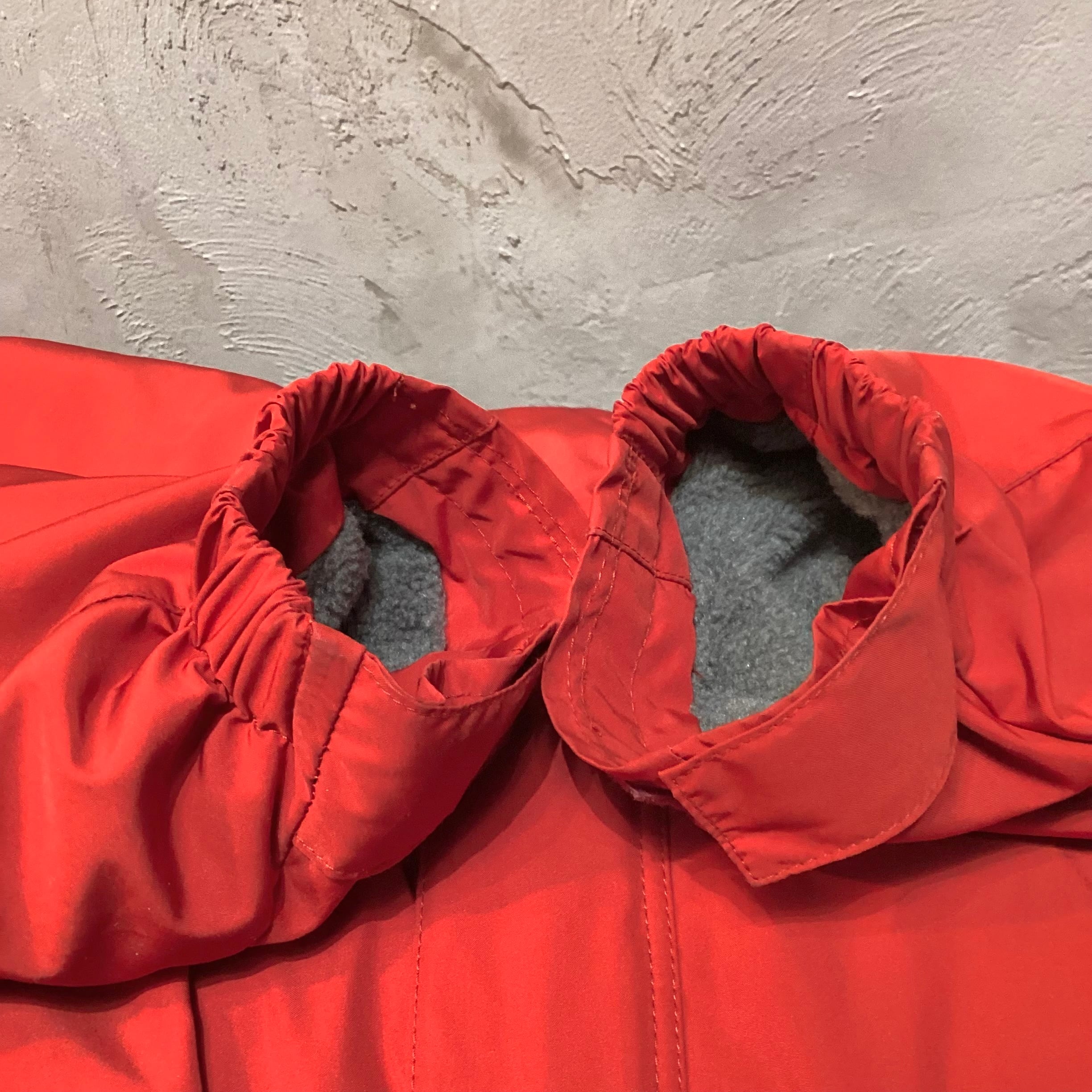 袖口はマジックテープの仕様になり、フード口、ウエスト、裾にゴムのドローコードが付きます。(ゴムの劣化等は見受けられません)