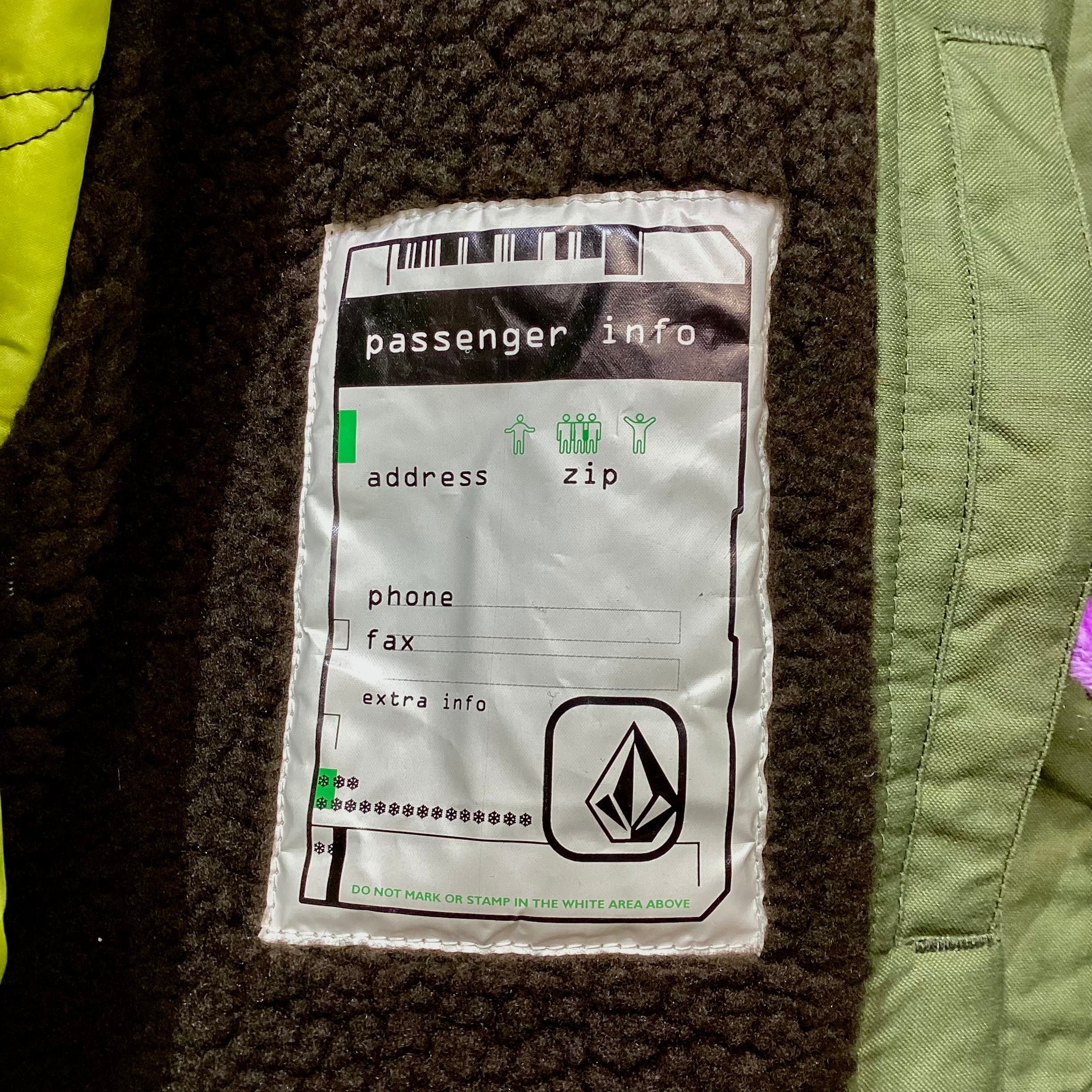 内側には ”VOLCOM SNOW” のデカタグとアドレスタグの2パターンのタグが付きます。