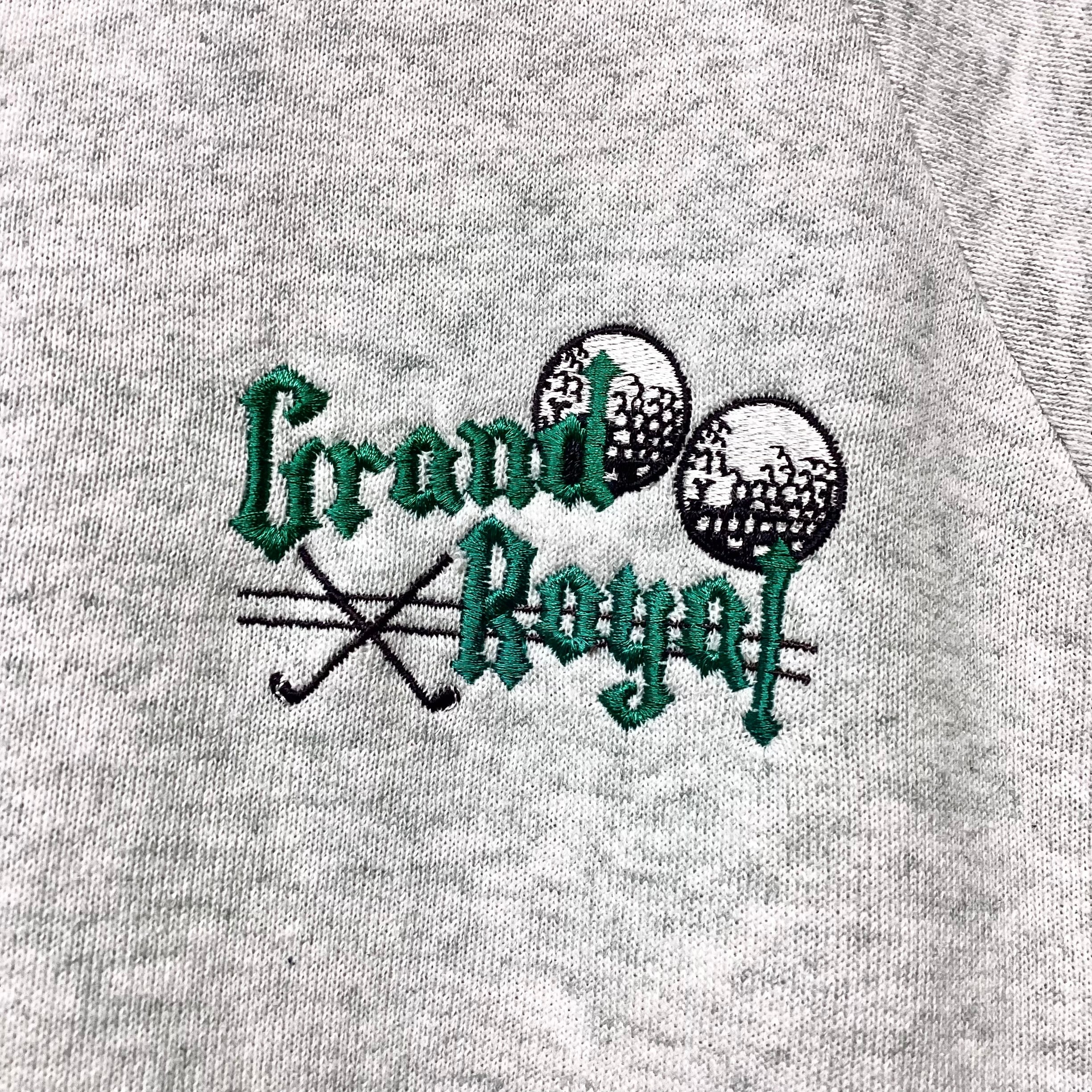 左胸に刺繍でゴルフモチーフの ”Grand Royal LOGO” が施されています。