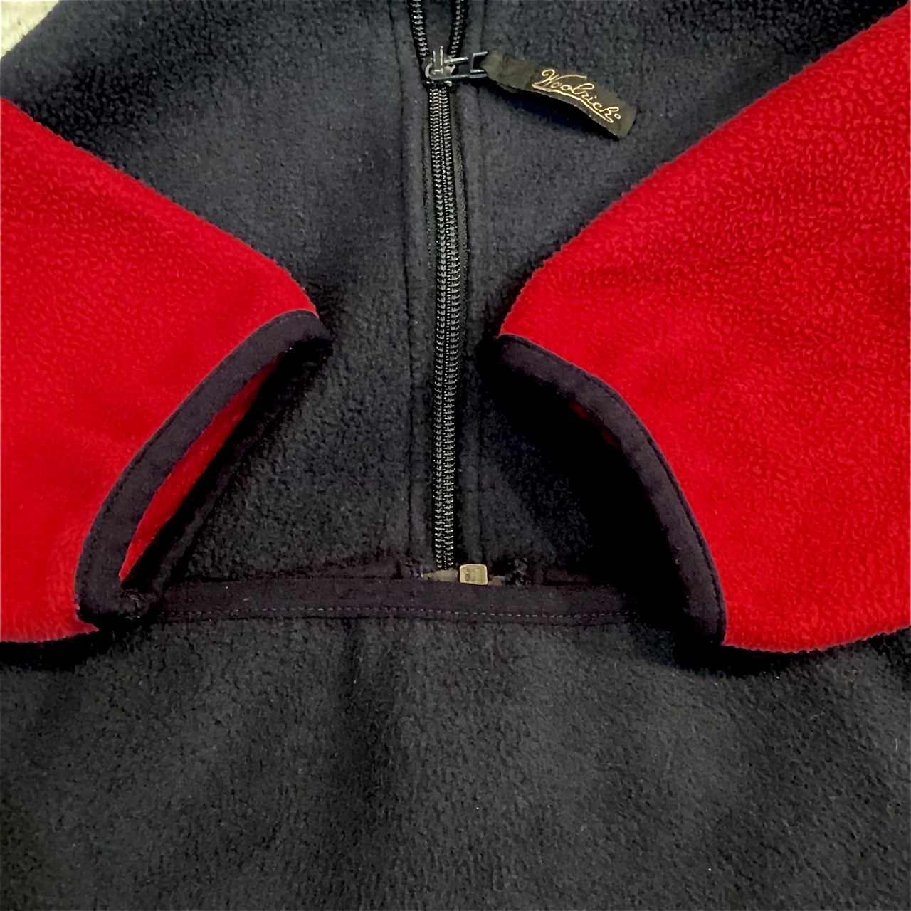 90年代前半のアメリカ製のウールリッチの切り替えしのUS規格らしい配色のPOLARTEC社製のフリースジャケットです。