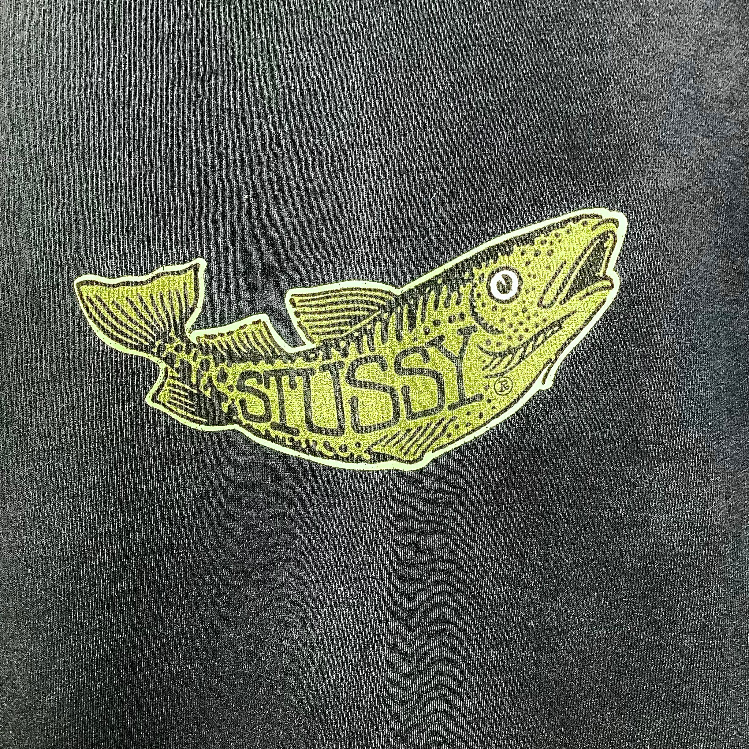 バックにはSTUSSYの文字が体に入る魚がプリントされています。